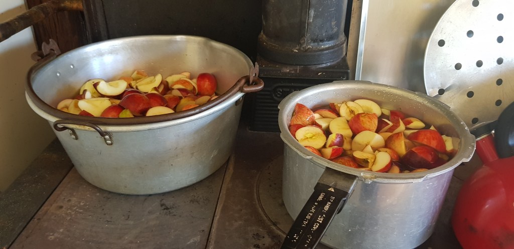 The apples are all sorted and I’ve begun to process them – no not apple cider! I’d like to learn how to make it though, perhaps next year. This year the best apples are kept for eating, second best are de-cored and pulped down for freezing and the not so good ones are cooked up with the cores to be made into apple jelly. It’s a slow and labourous job, but worth it for the outcome. While processing the apples I listened to a really good Radio NZ podcast about the history of our country. It is in 16 parts and so far I have listened to three.