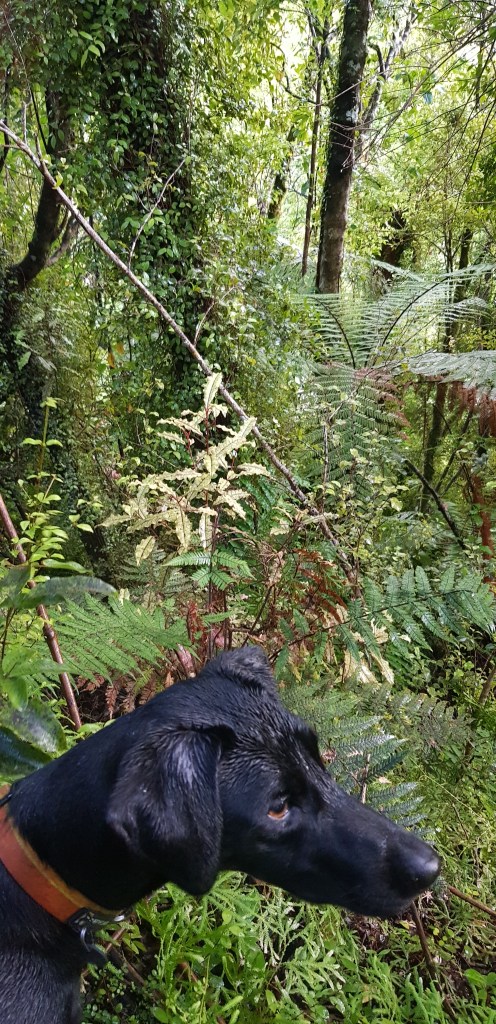 Today was beautiful: blue sky, sunshine and a fresh Easterly breeze; perfect for getting the washing dry. I had another bush walk with the dogs this morning. There was an old track of sorts but it quickly turned into supplejack and kiekie. It’s always hard to navigate your way through the tangle of jumbled vines. Poor ol’ Bo got stuck in some Bush Lawyer and cried for the pain and frustration of it all. He got out but I think he was pretty pleased when we got back onto the driveway!