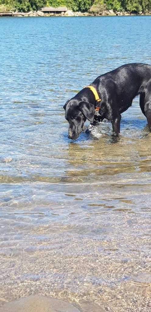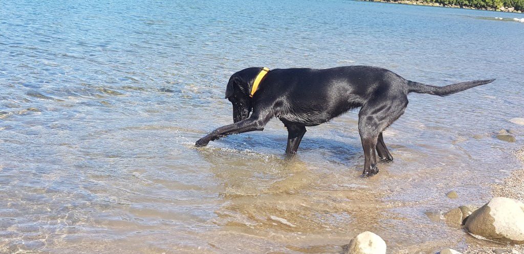 Eventually Kayden and I found a nice ‘beach’ and spent some time skimming stones. He was much better than I was! Petra was entertained with all the stone throwing; she chased the splashes and pawed at the water trying to get the stones out. She is funny when she puts her nose under the water, so we were highly entertained as well!