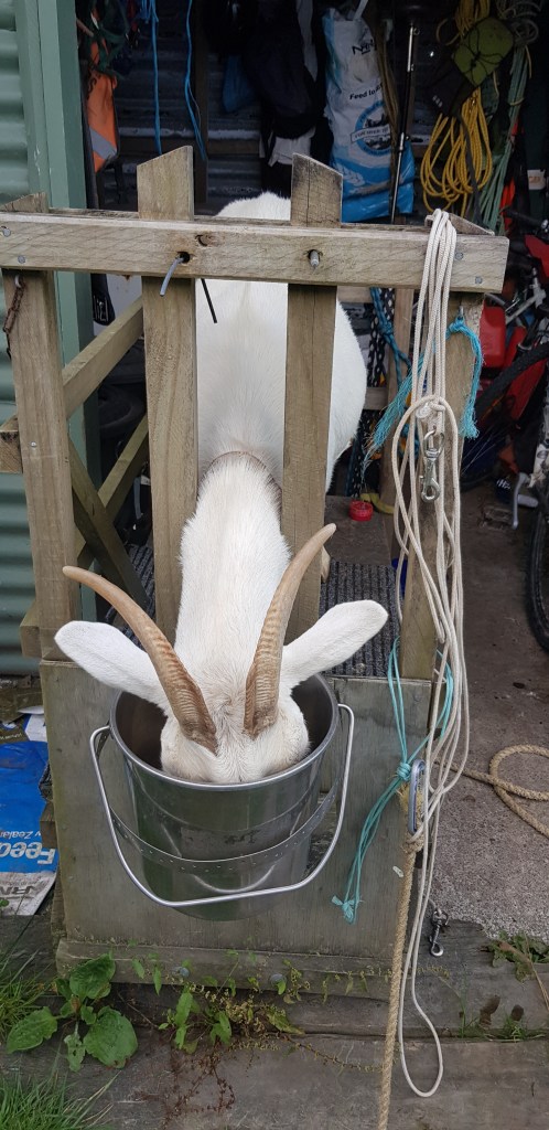 My introduction to goats was a wee kid called Petal who we got from a local goat dairy farm. I raised her on a bottle and at night she would sleep with our chickens in a nesting box. She had quite a personality, raised many lovely kids and taught us much. She produced more milk that we could drink, and so the cheese making journey began. Admittingly it took a little while to get used to the lower fat milk, but now it is our norm and we don’t have any other during the milking season. Goats are very different animals compared to cows and while very stubborn, I have developed a real loyalty to our goats.