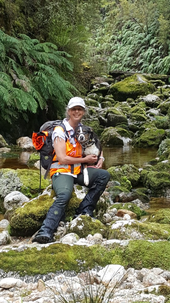 During a moment of boulder hopping along the river, I get a faint odour in the breeze. It stops me in my tracks and although I sense the humans stopping too, they become insignificant in my mind. I lift my nose to the air and take a deep sniff. My nose is going overtime; I smell humans, goats, weka, deer, a plant, someone’s left over lunch, mud and dirt. But over all that I smell the bird that we are looking for. There is a whio, maybe more than one ahead of us on the river. We move forward and around another bend. There is an impassable rock ahead of us, so we climb onto the track and begin to move away. This is wrong! We are leaving the birds. They are behind us. I turn around and head stealthily back towards the river. This is the time the relationship I have with the one who knows me best counts. She recognises what’s happening and says to her companion, “ Best we follow the dog, she’s onto something”.